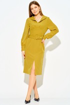 Отложной воротник придает модели нотки классики и делает платье уместным для офиса, деловых встреч и повседневных выходов. Длинный втачной рукав обеспечивает дополнительный комфорт и делает модель идеальной для прохладного сезона. Платье отлично сочетается как с лодочками и клатчем, так и с более повседневными аксессуарами.
