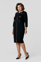 Трикотажное платье сделает Ваш образ неповторимым. А-образный силуэт придаст стройность и свободу движения. Перед платья с нагрудными вытачками из боковых швов. С левой стороны, в области бедер, есть нефункциональный карман с молнией. Горловина переда круглая. Рукав двухшовный, длинный. Спинка со средним швом. В комплект входят бусы, которые дополнят Ваш образ.