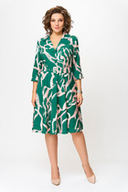 Модель полуприлегающего силуэта, с фантазийным рукавом длиной 3/4, без подклада. Перед и спинка со средним швом. V-образный вырез горловины. Талия подчёркнута съёмным завязывающимся поясом из основной ткани.