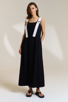 Платье полуприлегающего силуэта, выполненное на запах, длиной до середины бедра. Платье отрезное по линии талии. Лиф спинки со средним швом и рельефами. Лиф переда с рельефами от пройм до подреза по талии. Юбка спинки со средним швом и талиевыми вытачками. Юбка переда ассиметричная: правый перед укорочен, левый перед удлинен. Воротник пиджачного типа. Рукава двушовные, втачные, длиной до локтя. Застежка по переду на петли и пуговицы. Платье на подкладке с плечевыми накладками.