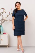 Платье полуприлегающего силуэта с вывязанной V-образной формой горловины переда и спинки. Без рукавов. Пройма вывязана по контуру. Перед и спинка выполнены переплетением кулирная гладь. Платье изготовлено из пряжи, в составе которой хлопок, ПАН в сочетании с метанитом.Металлизированная нить в тон пряжи вплетена таким образом, что видна и блестит с лицевой стороны изделия ,придавая ему нарядность.