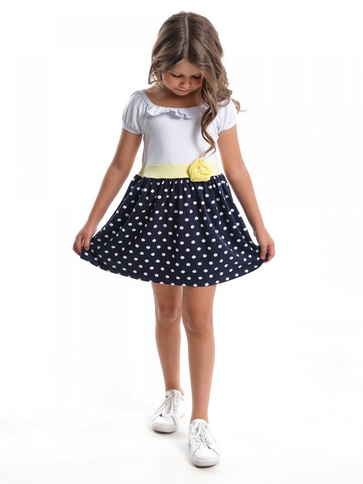 Совместные покупки Тюмень Детская одежда Платья — Mini Maxi Платье с желтым поясом (92-116см) UD 1525-1(2) бел/горох