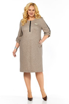 Платье женское прямого силуэта со спущенной линией плеча. Застежка центральная на 8 петель и пуговиц. Воротник отложной на стойке. По верхней части спинки кокетка, нижняя часть спинки со встречной складкой. В боковых швах карманы. По линии талии пояс в тон ткани. Низ рукава с манжетой и декоративной патой. Платье с фигурной линией низа и разрезами.