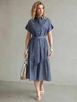 22.03 Vilatte Платье в полоску А-силуэта с поясом из легкого хлопкового поплина
