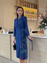 Платье Swallow 699.1 королевский синий+сине-бежевая гусиная лапка