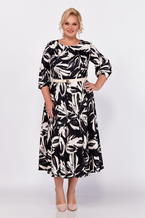 Совместные покупки Тюмень Женская одежда Платья — Платье Swallow 778 черный+принт бежевые цветы