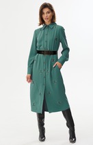 Платье полуприлегающего силуэта из мягкой шифоновой ткани на трикотажной подкладке. Полочка с отрезными рельефами, спинка с центральным швом и рельефами. Горловина округлой формы. Рукав втачной, формы «колокол», по окату с лёгкой сборкой, длиной 34 см.