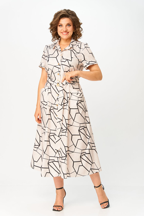 Совместные покупки Тюмень Женская одежда Платья — Платье Swallow 844.2 льняной, принт «чёрная геометрия»