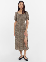 Платье женское, А-силуэта с коротким втачным рукавом, из трикотажного полотна. Вырез горловины круглой формы с подрезной бейкой. Спереди наклонные карманы с декоративными пуговицами. А-силуэт платью придают рельефы переда и спинки с цельнокройными бочками. По спинке средний шов и застежка на потайную тесьму "молния" Платье на трикотажной подкладке.