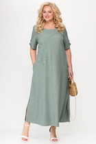 Платье женское, прямого силуэта, выполнено из ткани поливискоза "SHANE" со стрейчем. По переду нагрудные вытачки из пройм. Рукав втачной, длинной 3/4. Низ платья по переду и нижняя часть рукава задекорированы фантазийными элементами ткани из органзы. Вырез горловины круглой формы. По спинке шов и застежка на потайную тесьму "молния"