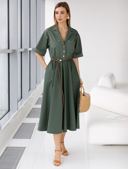 Совместные покупки Тюмень Женская одежда Костюмы, комплекты — Платье в стиле сафари с отложным воротником