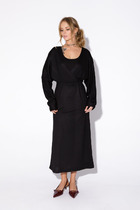 В среднем шве спинки застежка на потайную тесьму-молнию и шлица.