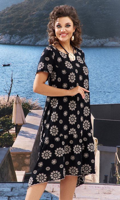 Совместные покупки Тюмень Женская одежда Платья — Платье Vittoria Queen 24663 черный+молочный принт