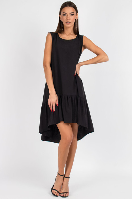 Низ переда и спинки оформлен фигурной линией с притачным воланом.