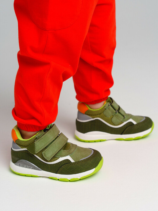 Кроссовки из искусственной кожи и текстиля. Подкладка выполнена из 100% хлопка. Две липучки создают удобство при обувании. Съемная кожаная профилированная стелька с анатомической формой способствует равномерному распределению давления и препятствует развитию плоскостопия. В модели использованы BIO-FLEX технологии для правильного формирования стопы ребенка: стабилизация, дышащий антибактериальный материал для стельки. Гибкая подошва с противоскользящим эффектом. ANTI-SHOCK система снижает ударную нагрузку.
