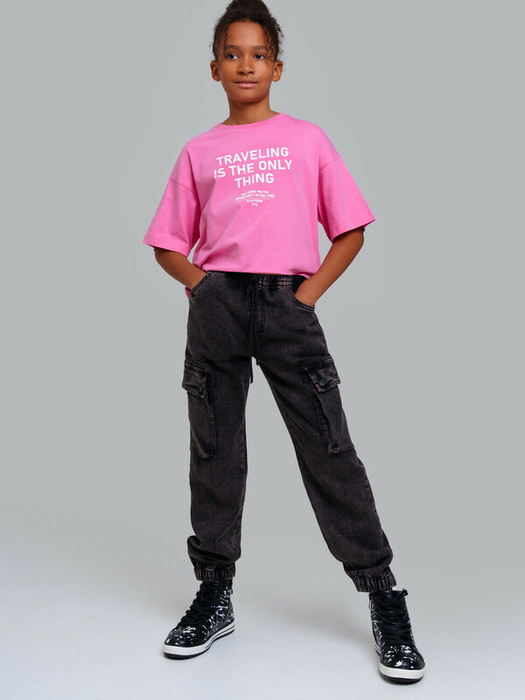 Джинсы для девочки подростка. JOGGER FIT - спортивный крой. Средняя посадка. На резинке со шнурком. Накладные карго-карманы.  Модель выполнена из качественного и плотного текстиля.