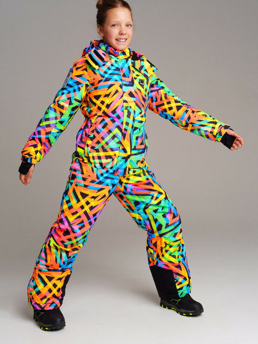 Мембранный материал делает этот яркий и модный комбинезон непромокаемым: мембрана не пропускает влагу снаружи, но выводит её изнутри, что крайне важно во время подвижных игр и занятий спортом.