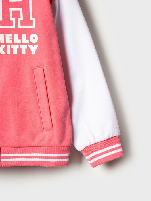 Детский спортивный костюм для девочки. Комплект выполнен из хлопкового футера и состоит из толстовки бомбера на кнопках и широких брюк на резинке. Толстовка прямого кроя с красочным принтом Хеллоу Китти. Боковые карманы. Манжеты и пояс выполнены из эластичного риба, благодаря чему изделие хорошо держит форму. Широкие брюки — комфортные, с эластичным поясом и шнуром для регулировки посадки. Удобные боковые карманы. Декоративные лампасы.