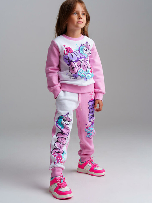 Костюм детский из футера с начесом для девочки. Свитшот с высоким содержанием хлопка. Штаны на резинке со шнурком. Удобные карманы. Модель из капсульной коллекции UNICORN KUROMI (ЮНИКОРН КОРОМИ). Соберите полный образ в едином стиле!   Модель выполнена из качественного и приятного на ощупь трикотажа.
