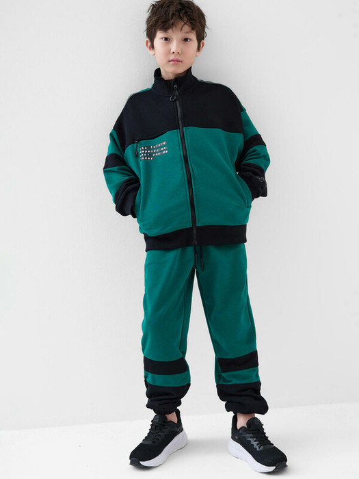 Спортивный костюм для мальчика подростка. Комплект выполнен из хлопкового футера и состоит из толстовки на молнии и джогеров на резинке. Толстовка оверсайз с высоким воротником-стойкой. Модель украшена принтами на груди и спинке, а также декоративной нашивкой на рукаве. Нагрудный карман на молнии и удобные боковые карманы. Манжеты и пояс выполнены из эластичного риба, благодаря чему изделие хорошо держит форму. Брюки джоггеры — комфортные, с эластичным поясом и шнуром для регулировки посадки. Удобные боковые карманы. Низ штанин собран на резинку.
