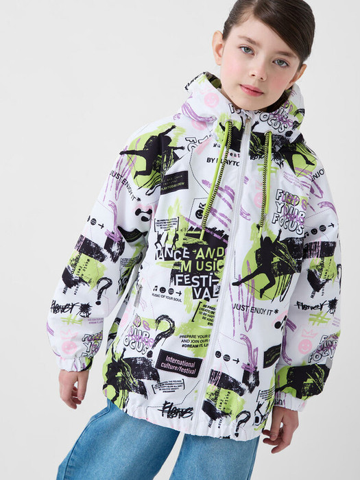 Ветровка с мембраной для девочки подростка. Температурный режим от +20С до +10С. Ткань с мембранным покрытием 5000х5000. Внутри гладкая подкладка. Капюшон несъемный с утяжкой шнуром. Два удобных кармана на молнии. По низу изделия и на рукавах — эластичная резинка. Сзади — светоотражающая нашивка для безопасности.