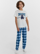 Пижама: футболка, брюки из качественного и приятного на ощупь трикотажа джерси. 100% хлопок. Футболка oversize. Брюки comfort fit с эластичным поясом со шнурком. Карманы в боковых швах.