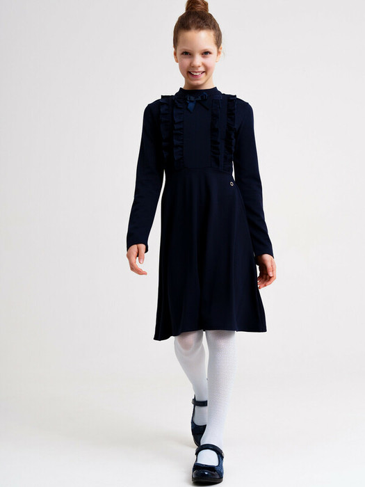 Школьное платье для девочки подростка. Синее платье прямого силуэта из трикотажа идеально в школу. Платье для школы выполнено из ткани с высоким содержанием вискозы, что обеспечивает максимальный комфорт для школьницы во время занятий. Вискоза отличается высокой гигроскопичностью - она впитывает влагу и отлично сохраняет тепло. Платье имеет застежку на молнию.