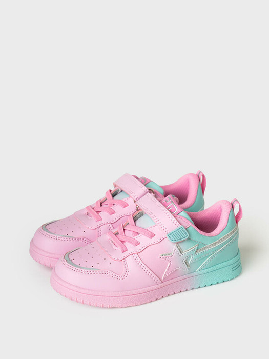 Оригинальные кеды для девочек. Кроссовки выполнены из искусственной кожи градиентной окраски. В обуви есть светоотражающие элементы. В носочной части обуви стоит текстильная подкладка c высоким содержанием хлопка 80%, которая обладает высокой гигроскопичностью. В пяточной части обуви текстильная подкладка обладает хорошей износостойкостью. Профилированная съемная стелька из натуральной кожи с анатомической формой подсводника обеспечивает правильную нагрузку на стопу. Формоустойчивый задник поддерживает стопу в правильном положении. Эргономичная форма колодки обеспечивает правильное формирование стопы ребенка. Подошва из ТПР гибкая, не скользит и устойчива к истиранию.