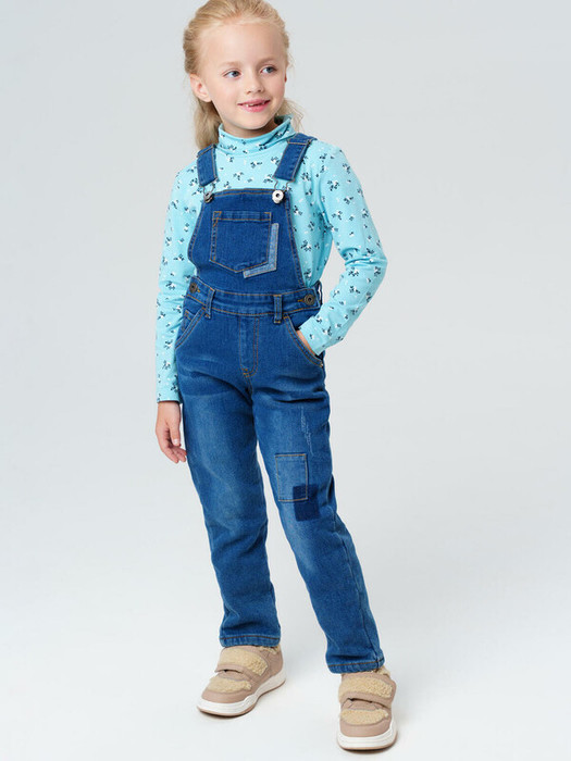 PlayToday Полукомбинезон текстильный джинсовый утепленный флисом для девочек 325