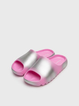 Модные шлепанцы для девочки подростка. Модель для пляжа и бассейна из облегченного и прочного ЭВА. Модель имеет градиентное радужное окрашивание. Материал хорошо моется. Форма модели учитывает эргономику стопы.