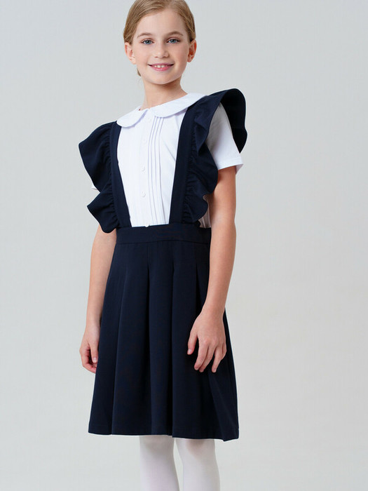 Темно-синее школьное текстильное платье сарафан для девочки-подростка