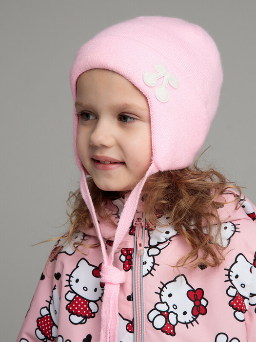 Шапка из вязаного трикотажа. Пряжа из акрила: легкая, теплая, гипоаллергенная. Завязки.