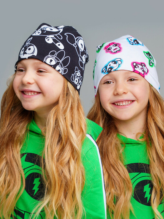 Шапка из качественного и приятного на ощупь трикотажа джерси. Высокое содержание хлопка 95%. Благодаря наличию эластана в составе ткани изделие проще в уходе и держит форму. 2 шт. в комплекте.