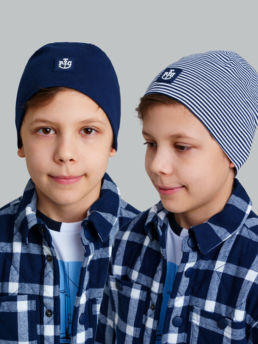 Набор шапок для мальчика подростка. Шапка из качественного и приятного на ощупь трикотажа джерси. Модель с высоким содержанием хлопка 95%. Благодаря наличию эластана в составе ткани изделие проще в уходе и держит форму.