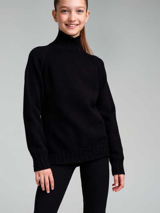 Свитер из вязаного трикотажа. Высокое содержание вискозы 50%. Вискоза отличается высокой гигроскопичностью - она впитывает влагу и отлично сохраняет тепло. Воротник-стойка. Горловина, манжеты и низ изделия с переплетением "косичка". Посадка comfort fit - свободный крой.