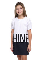 Детская юбка-леггинсы для девочки. Верхняя часть выполнена из легкой сетчатой ткани, под ней — плотные трикотажные укороченные леггинсы. Широкий пояс держится за счёт внутренней резинки. Длина юбки — до середины бедра.