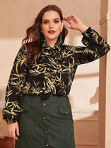 Совместные покупки Тюмень Женская одежда Блузки, рубашки — Плюс блузка с завязками и принтом листьев
