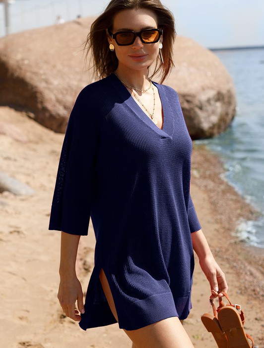 Совместные покупки Тюмень Женская одежда Джемперы, свитеры, водолазки — Пляжная туника полупрозрачной вязки из хлопка с вискозой