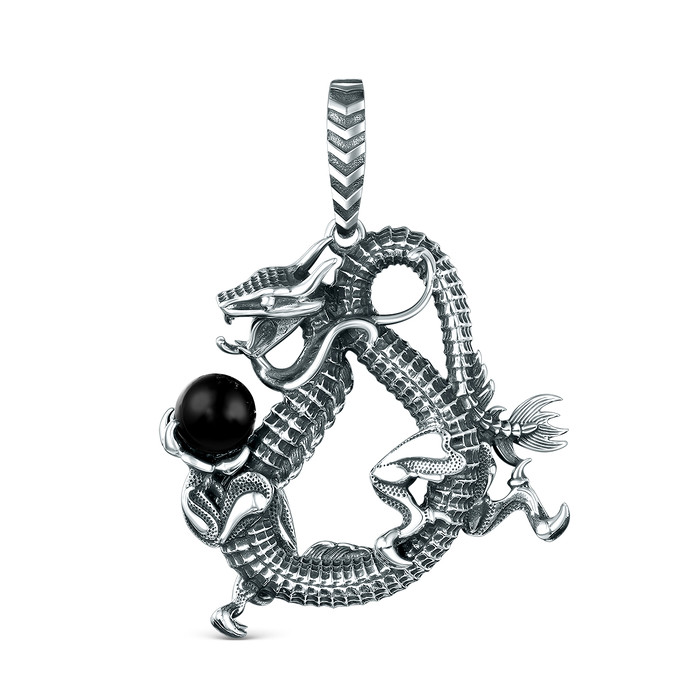 Совместные покупки Тюмень Ювелирные украшения и бижутерия Подвески — Подвеска из чернёного серебра с синтетическим агатом - Дракон 925 пробы ПДр-004о