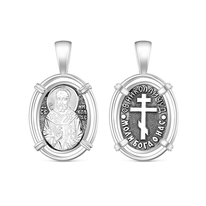 Подвеска из чернёного серебра - Святой Николай Чудотворец 925 пробы К3-544ч