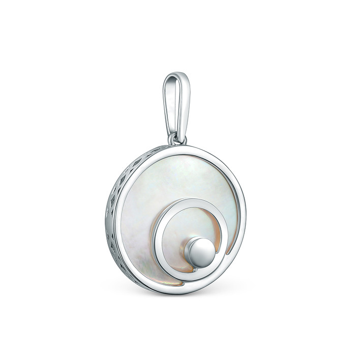 Подвеска из серебра с натуральным перламутром родированная - Круги 925 пробы П-2