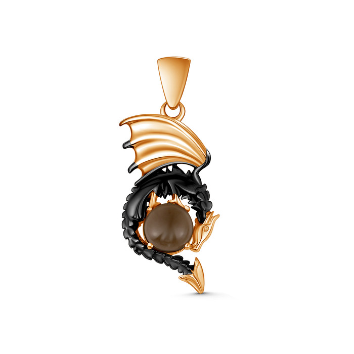 Подвеска из золочёного серебра с раухтопазом и родированием - Дракон 925 пробы 3
