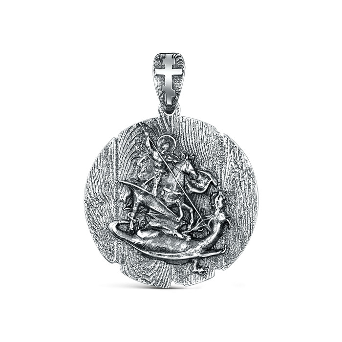 Совместные покупки Тюмень Ювелирные украшения и бижутерия Подвески — Подвеска религиозная из чернёного серебра - Георгий Победоносец 925 пробы п-003ч