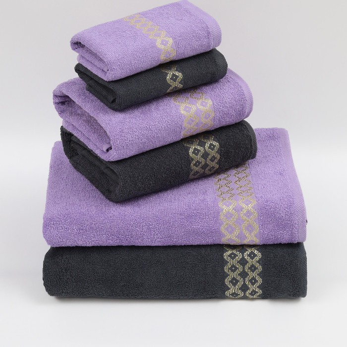 Совместные покупки Тюмень Товары для дома и дачи Полотенца — Полотенце махровое Блеск набор 2919 Сирень+Тёмно-серый 6 шт, 30*60, 50*80,70*130