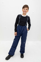 Полукомбинезон без подкладки, непромокаемый, на эластичных бретелях с регулировкой длины при помощи фастекса, сбоку под проймой кнопки для регулировки объема, низ брючин с эластичной резинкой. Для фиксации полукомбинезона используются съемные силиконовые штрипки. Светоотражающий принт в виде полосы сбоку.