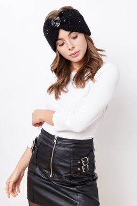 Женская двойная повязка, связана платочкой с добавлением пайеток и с пришивной брошкой. Пайетки актуальны не первый год и не выходят из моды уже не один сезон.
