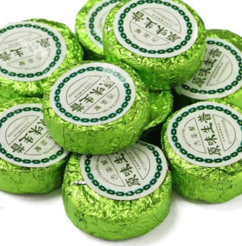 Шен Пуэр прессованный Зеленая медаль изготавливается из самых молодых чайных листьев, которые после сборки вручную не окисляются (не подвергаются ферментации). Они лишь подсушиваются и подвяливаются для того, чтобы процесс окисления прекратился. После полного прекращения процессов ферментации чай формируется в медальки, прессуется, высушивается на солнце. Вкус мягкий и приятный, с травяностыми и цветочными оттенками и небольшой сладостью.