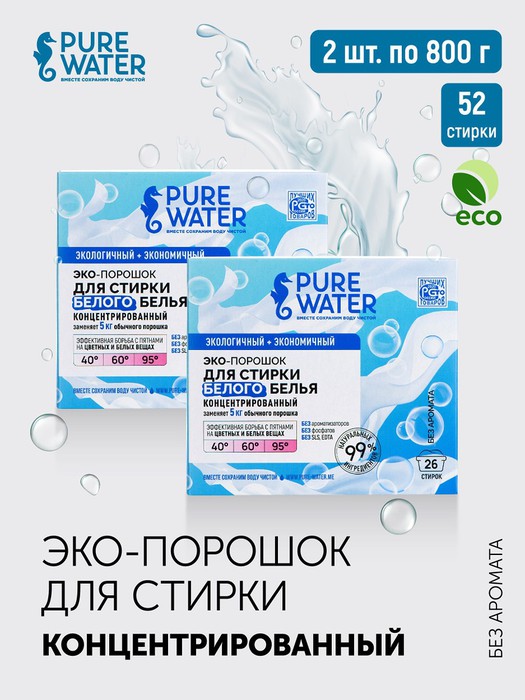 PURE WATER Набор из 2-х стиральных порошков для белого белья