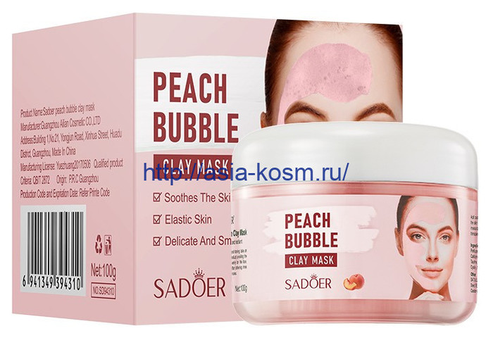 Заказать Пузырьковая глиняная маска Sadoer с экстрактом персика(94310)