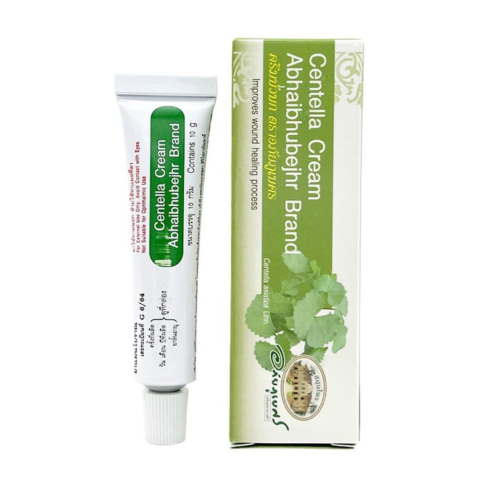 Крем на основе центеллы азиатской от тайского производителя Abhaibhubejhr стимулирует кожу к быстрому заживлению ран, порезов и царапин, способствует регенерации клеток кожи, значительно ускоряет процесс рубцевания тканей, избавляет кожу от высыпаний, устраняет шрамы различной этиологии, эффективно борется против бактерий.В креме содержится 7% экстракта центеллы азиатской.